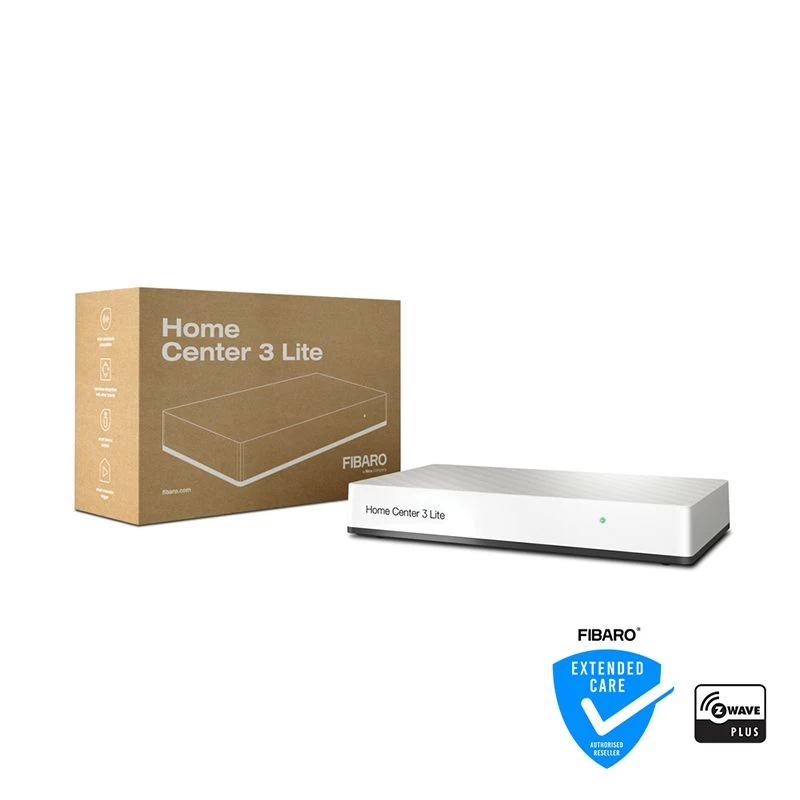 Ten opzichte van de Home Center 3 verschilt de Home Center 3 Lite op verschillende vlakken. Zo ondersteunt de Home Center 3 Lite tot 40 Z-Wave apparaten, in plaats van de 240 Z-Wave apparten zoals de Home Center 3. Ook wordt een maximum van 20 scènes aanbevolen, evenals één IP camera. Echter zijn deze aanbevolen aantallen prima voor kleinere huizen en appartementen. Daarnaast heeft hij een geheugen van 512MB. Ook heeft de Home Center 3 Lite een 1-core 900MHz processor en een capaciteit van 4GB. De Home Center 3 Lite beschikt over de twee actieve protocollen: Z-Wave en WiFi. De controller werkt probleemloos, zelfs zonder toegang tot internet. Een gebrek aan internet is dus geen probleem meer. Ook beschikt het Home Center 3 Lite over een ingebouwde functie om zichzelf te herstellen met nieuwe firmware of terug te zetten naar een vorige back-up. Bovendien kunt u de controller u niet alleen met FIBARO Z-Wave producten gebruiken, er zijn namelijk meer dan 2.000 producten van andere fabrikanten te integreren. Uiteraard gaat veiligheid boven alles. Daarom gebruikt de Home Center 3 Lite de nieuwste beveiliging op de markt. Hierdoor bent u ervan verzekerd dat uw gegevens en toegang tot uw huis effectief worden beschermd. Het Home Center 3 Lite enkel een slave zijn. Hiermee is het mogelijk om een Home Center 3 Lite en een Home Center 3 aan elkaar te koppelen via het LAN. Dit kan interessant zijn bij grote afstanden, grote woningen/kantoren, veel apparaten en buitenhuis.