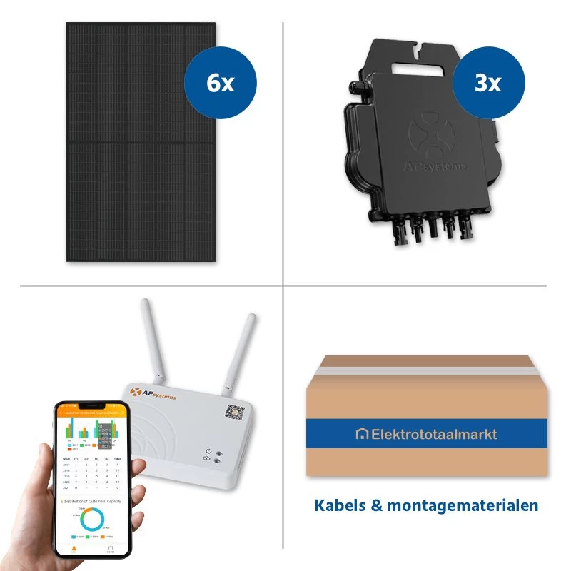 Met het Clickfit Evo zonnepanelen set van Glampère kunt u zelf uw eigen groene stroom opwekken. De complete set bestaat uit 6 zonnepanelen van 410Wp, 3 APSystems DS3-L micro-omvormers (leveren 10-15% meer rendement op dan andere micro-omvormers voor 2 panelen), APsystems ECU-R energie communicatie unit en een Esdec Clickfit Evo onderstel voor montage op schuine pannendaken. De zonnepanelen hebben 144 halve cellen per paneel en een vermogensgarantie van 84,8% na 25 jaar. De verwachte jaarlijkse opbrengst is tussen de 1980 en 2130KWh, waardoor de set zich in 3 tot 5 jaar terugverdient. De zonnepanelen sets worden compleet geleverd met een montagehandleiding. De afmetingen van de zonnepanelen set is circa 360cm bij 360cm. Verder bedraagt de productgarantie op de zonnepanelen 12 jaar. Wanneer u een account aanmaakt voor de ECU, dan wordt de garantie voor de omvormer automatisch verlengd naar 10 jaar. Zonder werkend account is de garantie op de omvormer 2 jaar.