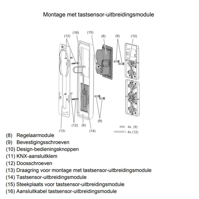 • Aansluiting voor één taster-uitbreidingsmodule 1-4-voudig